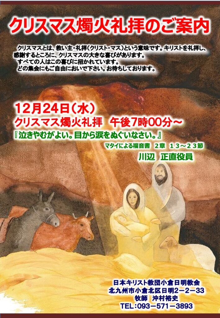 2025年12月24日(水)、午後7時00分〜、クリスマス燭火礼拝